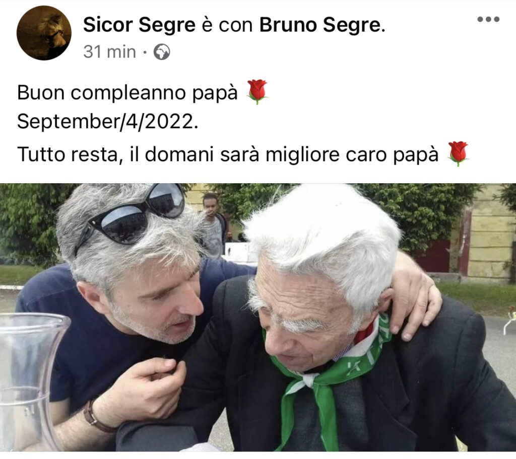Buon compleanno Bruno Segre dalla sezione ANPI Nicola Grosa con le parole del figlio Sicor: “Tutto resta, il domani sarà migliore caro papà!”