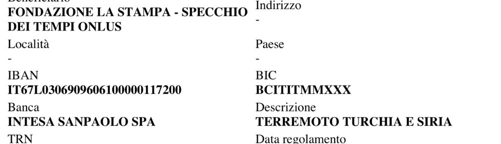 Dopo la consegna delle “shopper resistenti” avvenuta ieri al Ferrante Aporti abbiamo effettuato un primo bonifico di 500 € alla Fondazione Specchio dei Tempi a sostegno delle popolazione colpite dal terremoto.