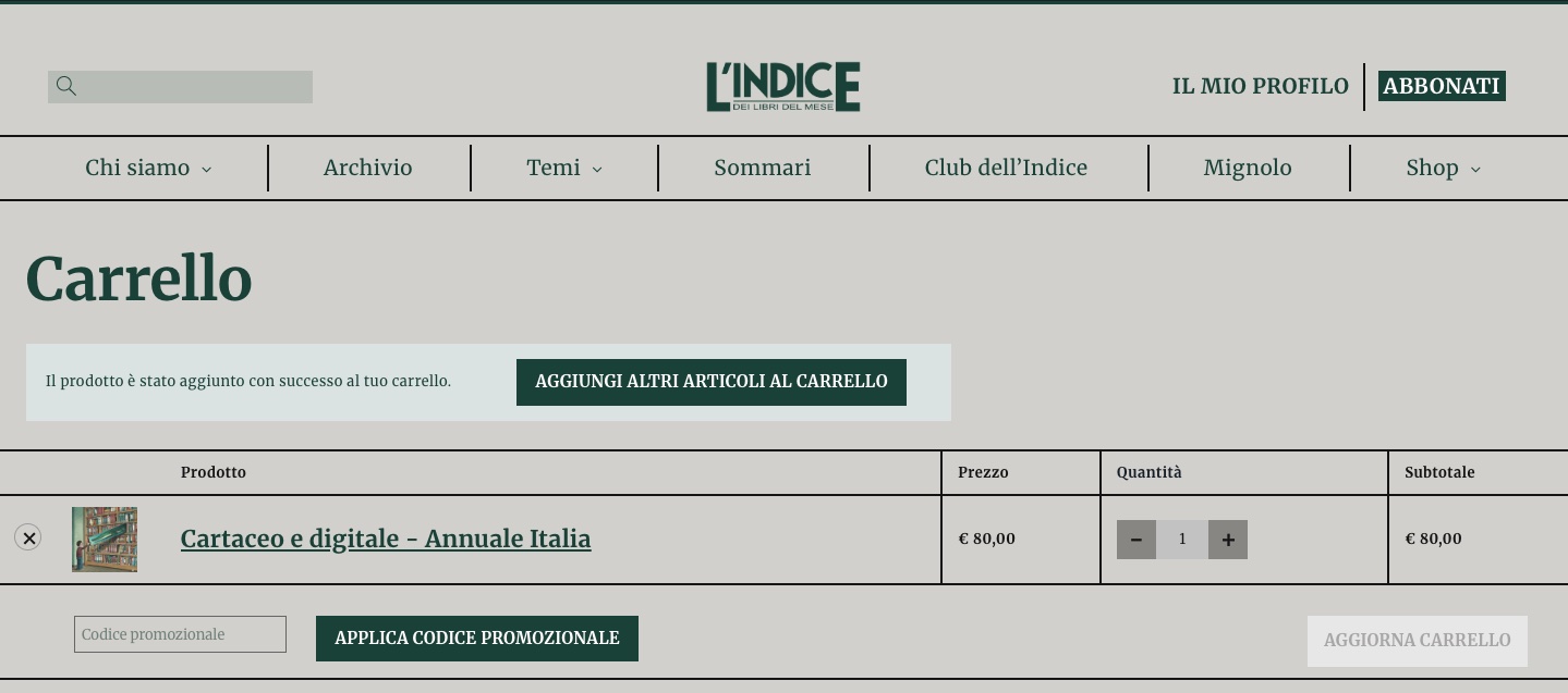 Per usufruire dello sconto sarà sufficiente utilizzare il codice nicolagrosa dopo aver scelto se  se cartaceo o digitale oppure solo digitale seguendo nell’apposita sezione “Codice promozionale” e cliccare poi sul bottone a fianco “Applica il codice promozionale”.