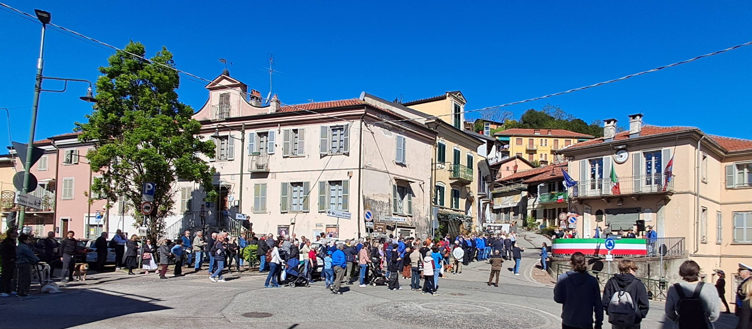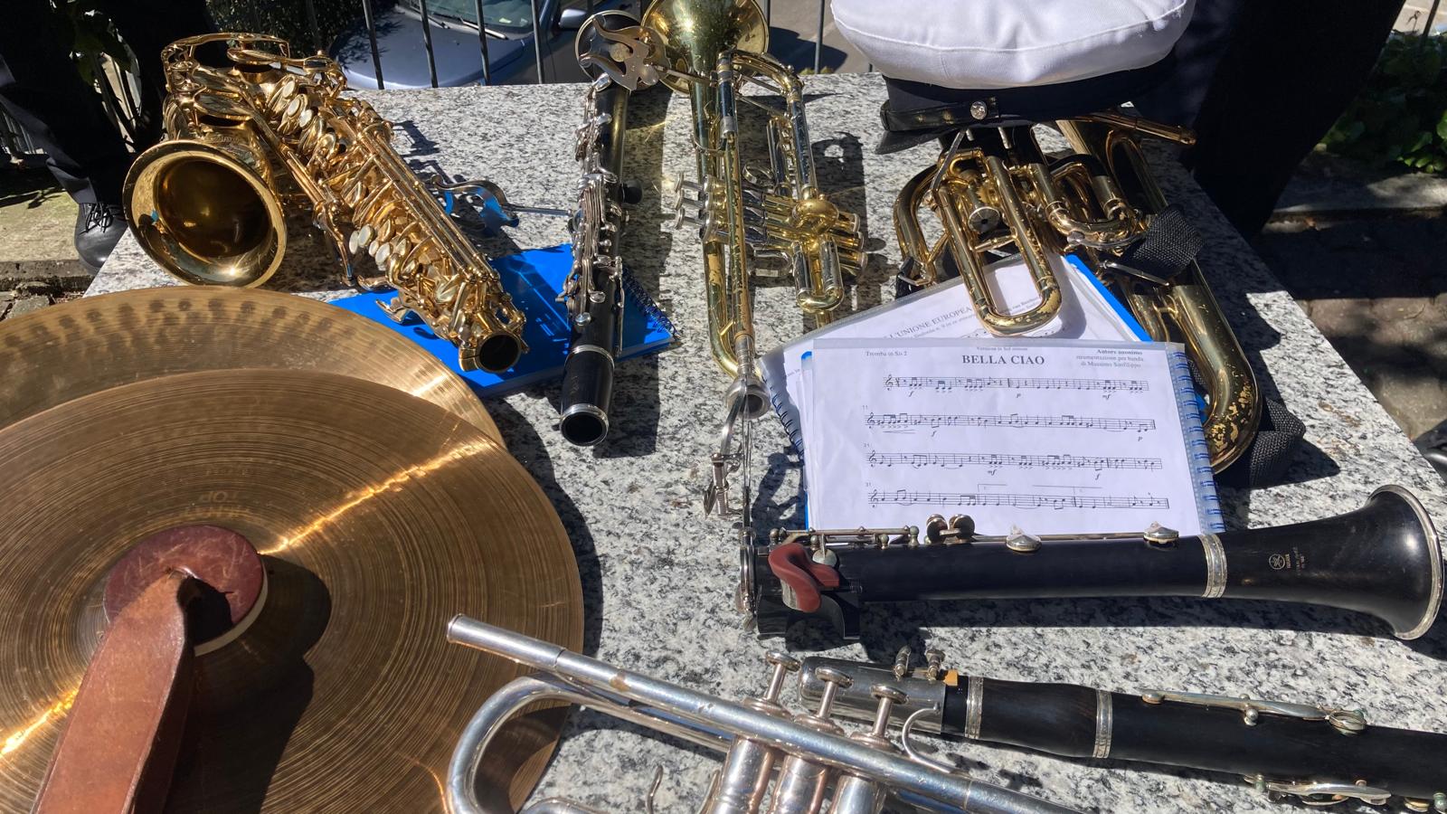 La banda ci accompagna con l’inno di Mameli (Il canto degli italiani), Fischia il vento e Bella Ciao e ci chiede: