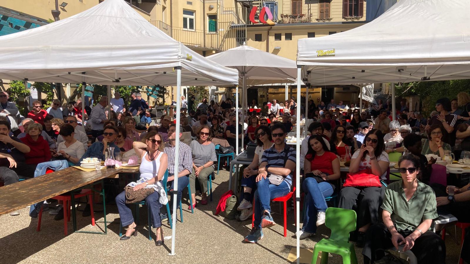 Eravamo in duecento alla Casa del Quartiere: c’era un bellissimo sole; molte magliette colorate; nonni genitori, giovani e giovanissimi.
