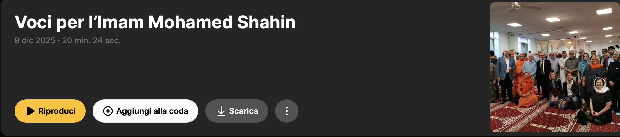 Abbiamo messo a disposizione i nostri canali Spotify e Spreaker per ospitare le voci, compresa naturalmente la nostra,  a sostegno dell’imam Mohamed Shahin.